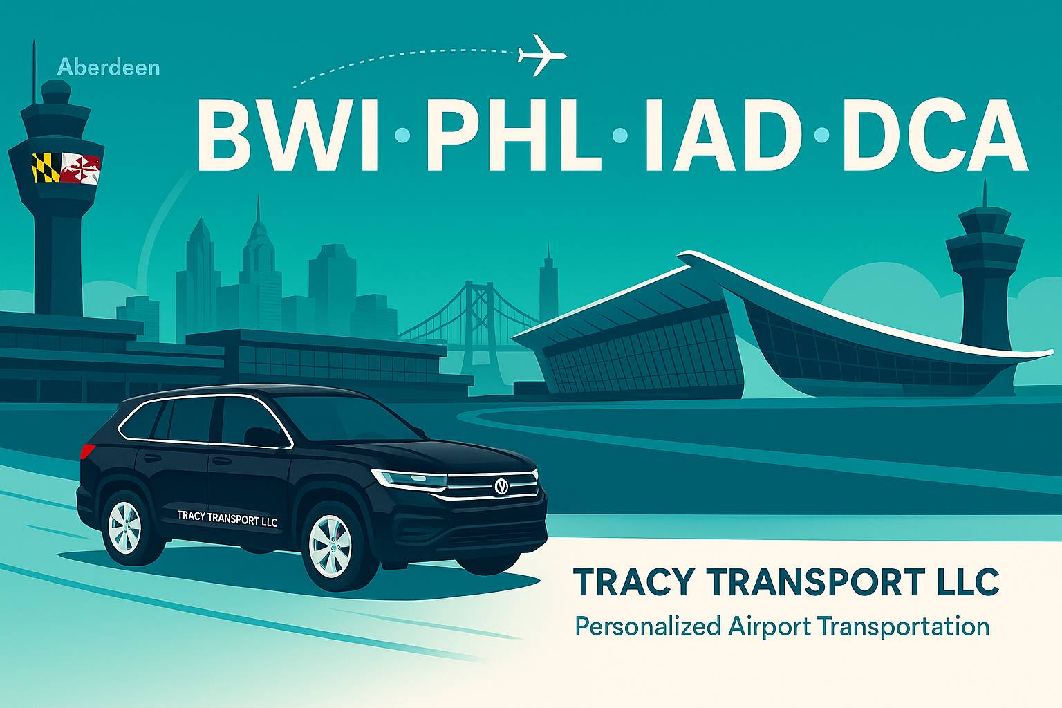 Tracy Transport LLC proudly serves Harford County, Cecil County, and surrounding areas in Maryland. We also provide transportation to major regional destinations such as BWI, PHL, DCA, IAD, and ILG airports, cruise terminals, and more. If you’re unsure whether we cover your area, just reach out—we’ll do our best to accommodate.